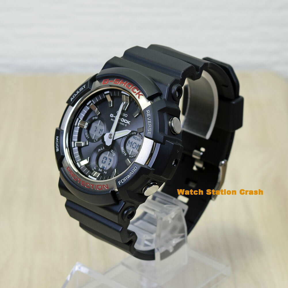 Watch Station CRASH > 腕時計 > メンズ腕時計 ■商品品番:GAW-100-1A ■サイズ/素材 ・ケース: 約55.1×52.5×16.7mm ・重 さ: 約 76g ・腕周り: 約13 〜 20mm ・ケース:樹脂 / ステンレス ・ベルト:樹脂 ・風 防:無機ガラス ■仕 様 ・防水性:20気圧防水 ・構造:耐衝撃構造(ショックレジスト) ・電源:タフソーラー(ソーラー充電システム) ・時刻修正:電波時計 日本・北米・ヨーロッパ・中国地域対応 MULTIBAND6 ※電波受信が行われない場合は、通常のクオーツ精度(平均月差±15秒)で動作します。