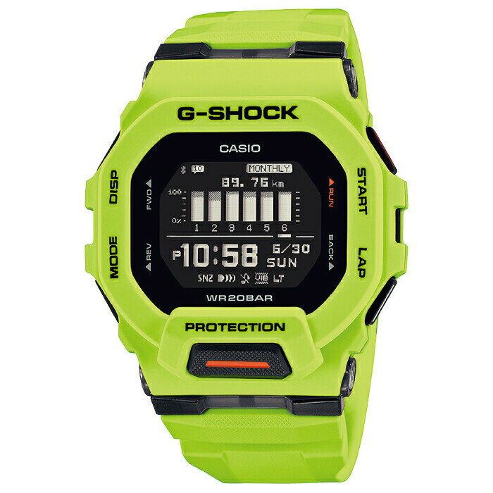 G-SHOCK G-SQUAD ジーショック ジースクワッド 品番 GBD-200-9JF ケースサイズ(H×W×D) 49.4 × 45.9 × 15mm 質量 58g ケース・ベゼル材質 樹脂 バンド 樹脂バンド 構造 耐衝撃構造(ショックレジスト) 防水性 20気圧防水 使用電源・電池寿命 約2年 センサー機能 トレーニング機能:加速度センサーによる距離・速度・ペースなどを計算して表示、自動/手動ラップ機能、オートポーズ機能、到達お知らせアラート設定(時間、消費カロリー)ON/OFF切替機能、トレーニング表示カスタマイズ機能(計測タイム、距離、ペース、ラップタイム、ラップ距離、ラップペース、平均ペース、速度、平均速度、消費カロリー) モバイルリンク機能 モバイルリンク機能(Automatic Connection、対応携帯電話とのBluetooth? 通信による機能連動) アプリ 「G-SHOCK MOVE」対応 ガラス 無機ガラス バンド装着可能サイズ 145〜215mm ワールドタイム ワールドタイム:世界38都市(38タイムゾーン※、サマータイム自動設定機能付き)+UTC(協定世界時)の時刻表示 ストップウオッチ ストップウオッチ(1秒、100時間計、スプリット付き) タイマー タイマー:最大5つの時間設定が可能なインターバル計測用のタイマー(セット単位:1秒、最大セット:60分、1秒単位で計測、オートリピート) アラーム/時報 時刻アラーム4本(スヌーズ機能付き) ライト LEDバックライト(オートライト、スーパーイルミネーター、残照機能、残照時間切替(1.5秒/3秒)付き) ライトカラー LED:ホワイト カレンダー フルオートカレンダー 操作音ON/OFF切替機能 操作音ON/OFF切替機能 パワーセービング機能 パワーセービング機能(毎日一定時間になると表示を消して節電します) 精度 ※スマートフォンと連携しない場合は、通常のクオーツ精度(平均月差±15秒)で動作します。